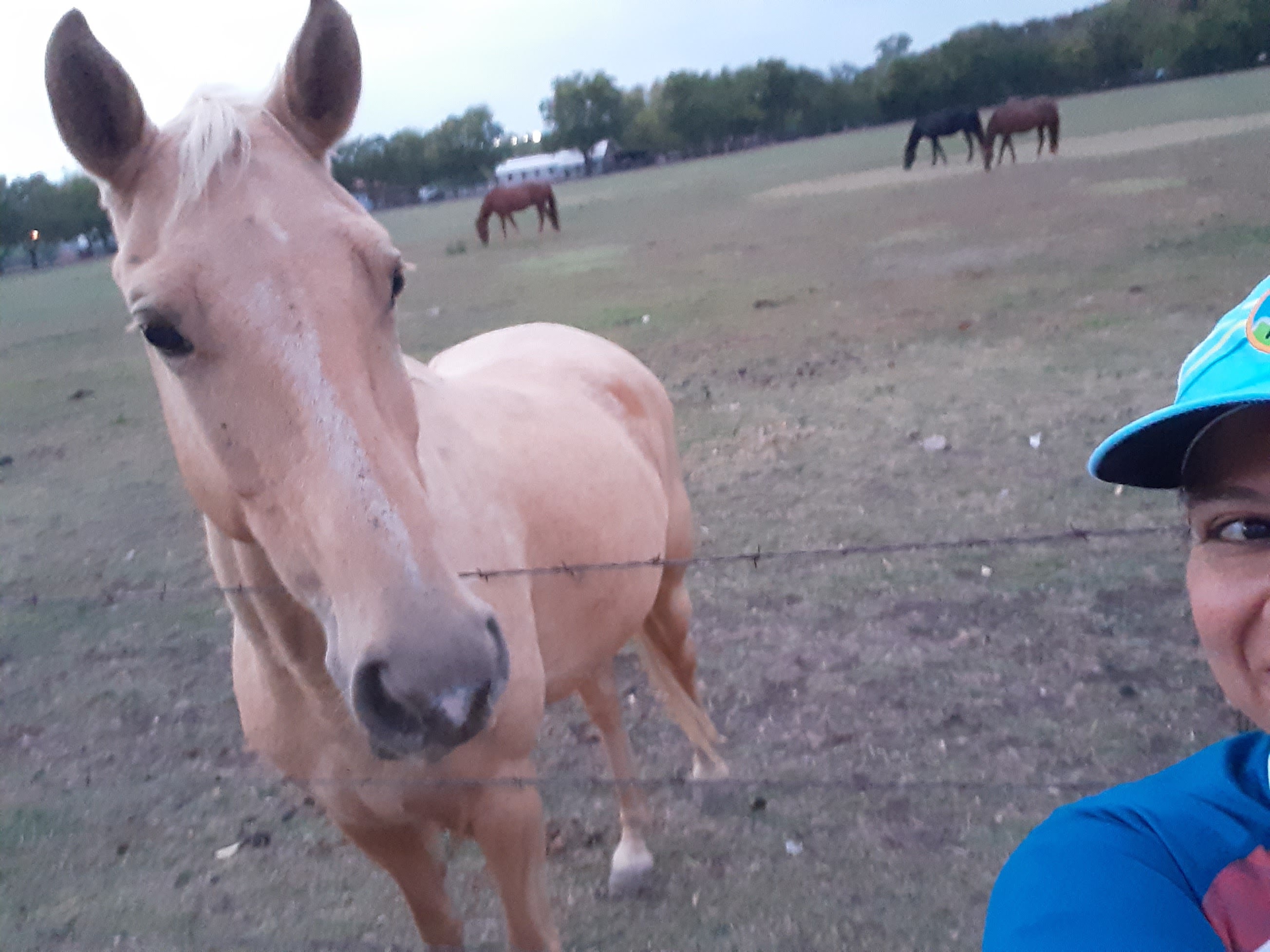Right after taking the picture of the dark brown horse, this lovely golden creature started making it’s way towards me for a close up. That’s as close as I got because I felt it coming for my cap!